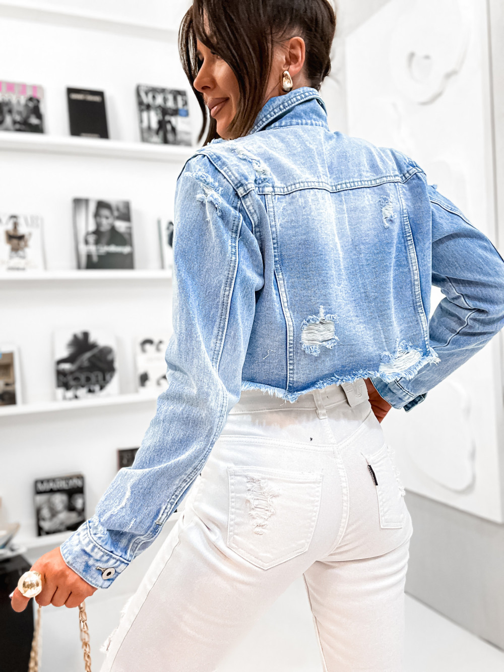 Niebieska katana jeansowa z delikatnymi przetarciami jest nowoczesnym i stylowym elementem damskiej garderoby. Krótki fason podkreśla atuty sylwetki, zapewniając wyjątkowy look. Stylowa katana jeansowa jest obowiązkową rzeczą w damskiej garderobie, możesz ją nosić zarówno z jeansami, jak również z sukienką w cieplejsze dni.