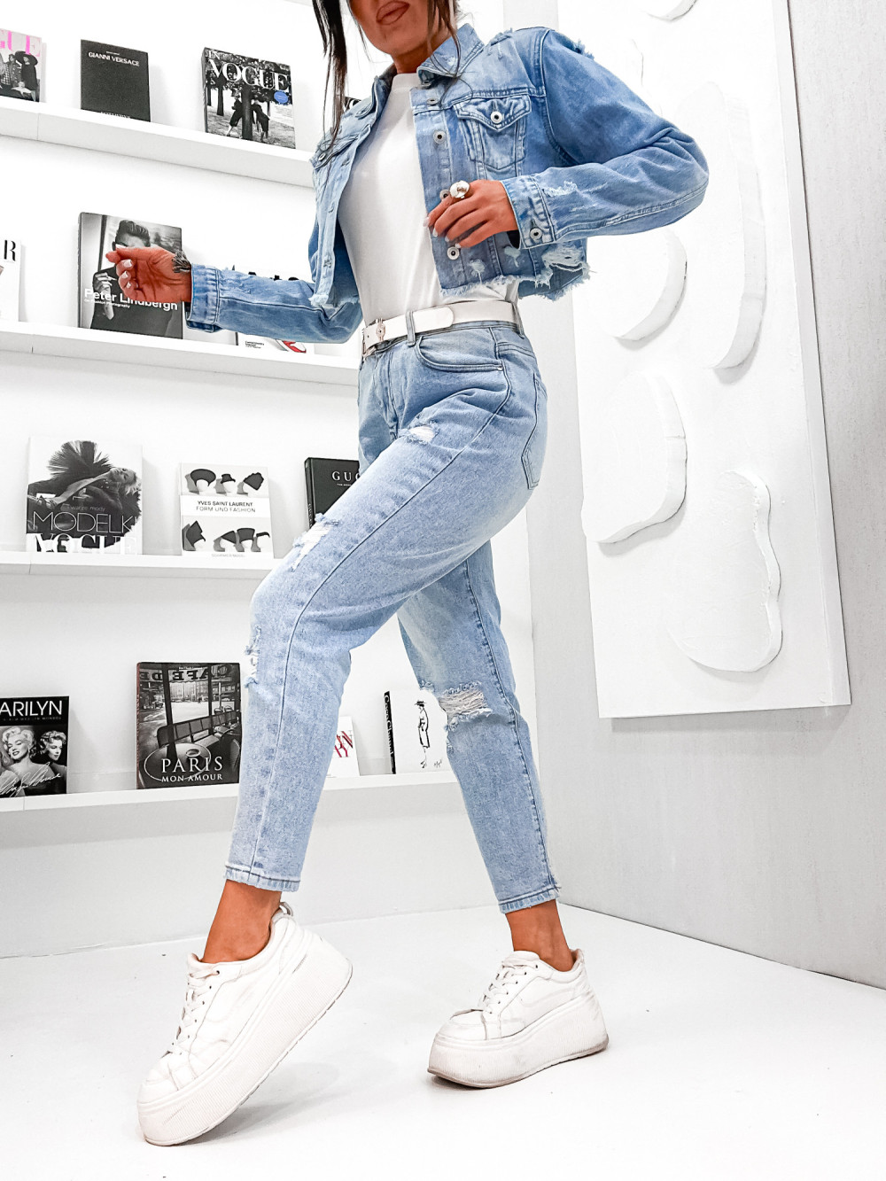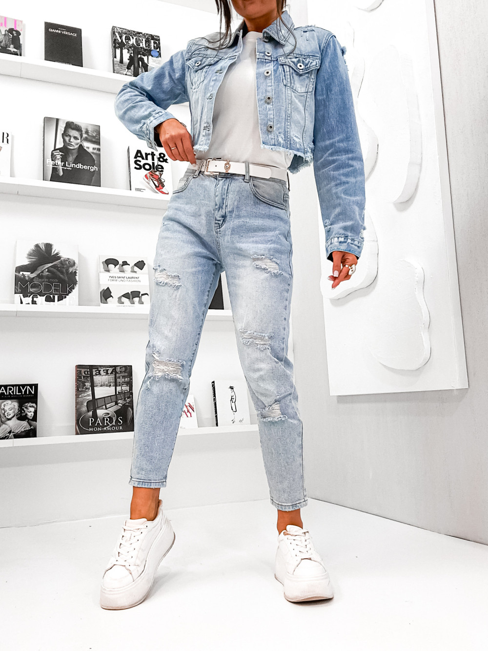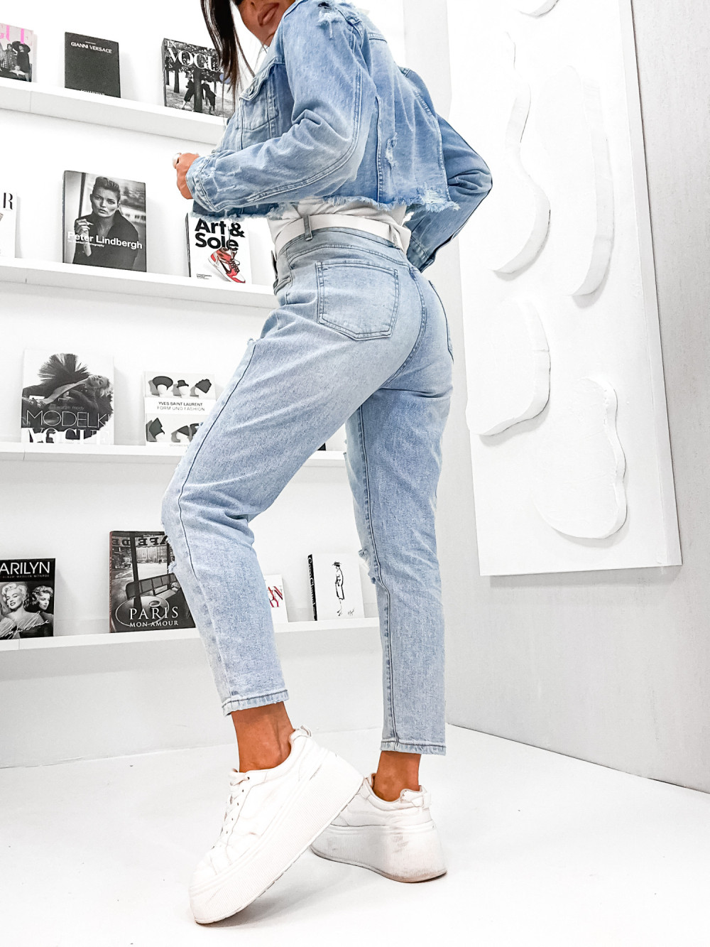 Spodnie JEANSOWE DENIM RIPPED light blue