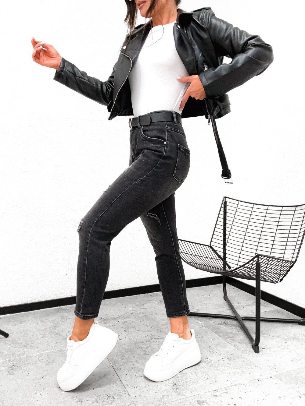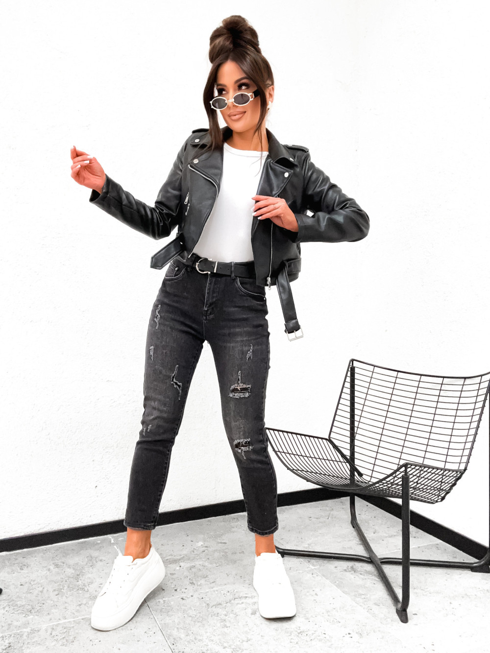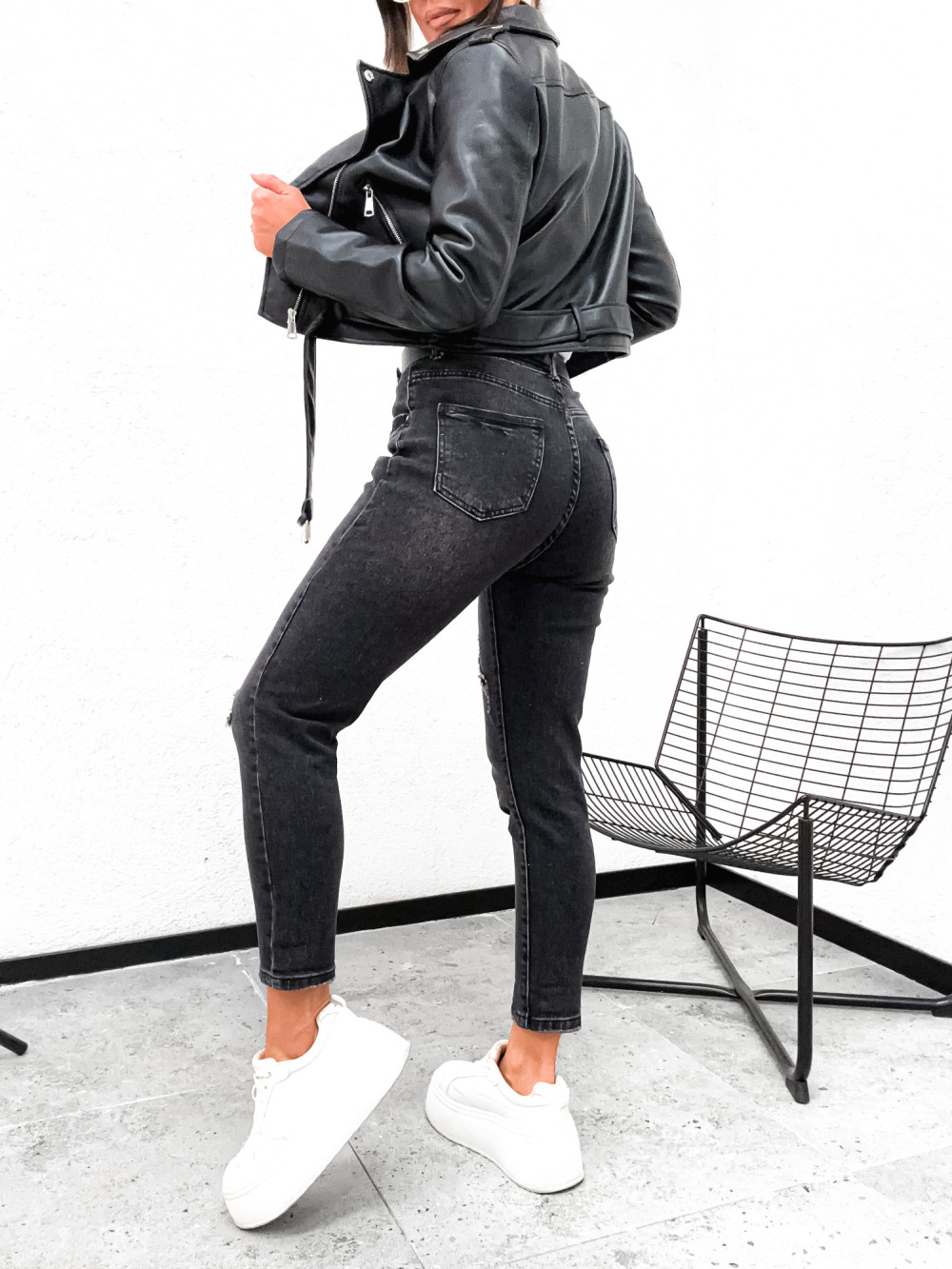 Spodnie JEANSOWE CZARNE z przetarciami DENIM