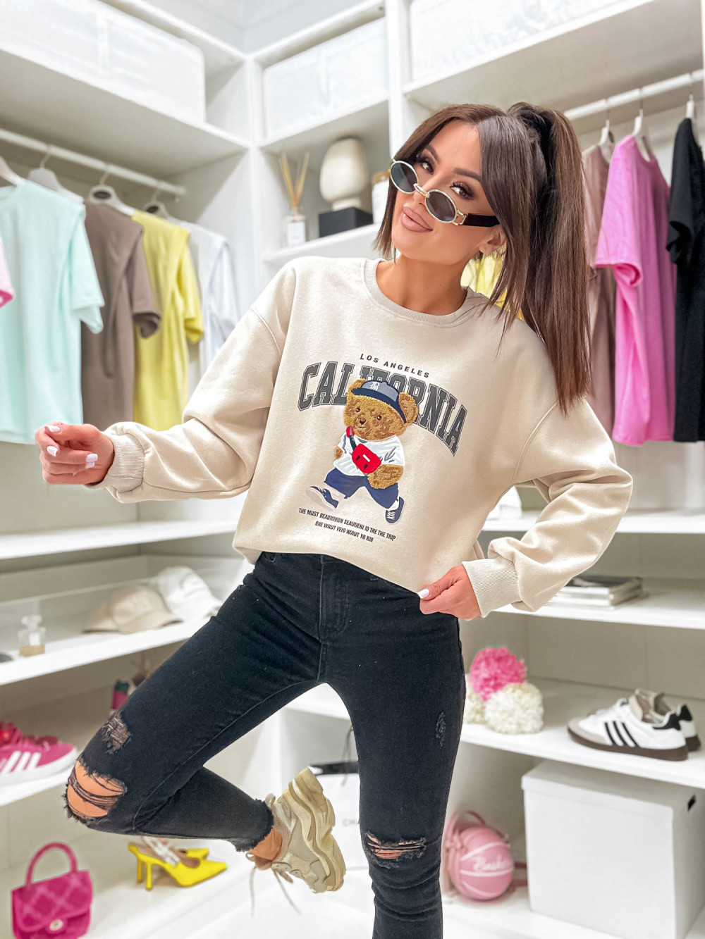 Bluza bawełniana z haftowanym misiem TEDDY CALIFORNIA nude beige