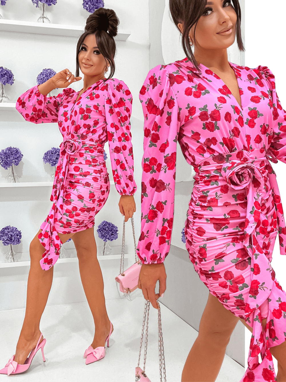 Sukienka ROSSALIA PRETTY flowers pink