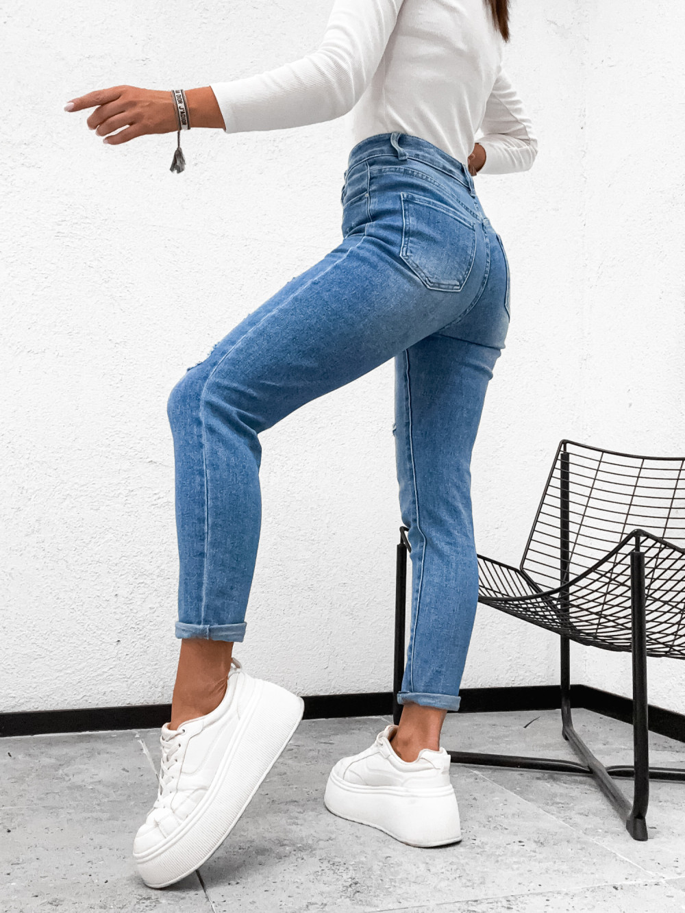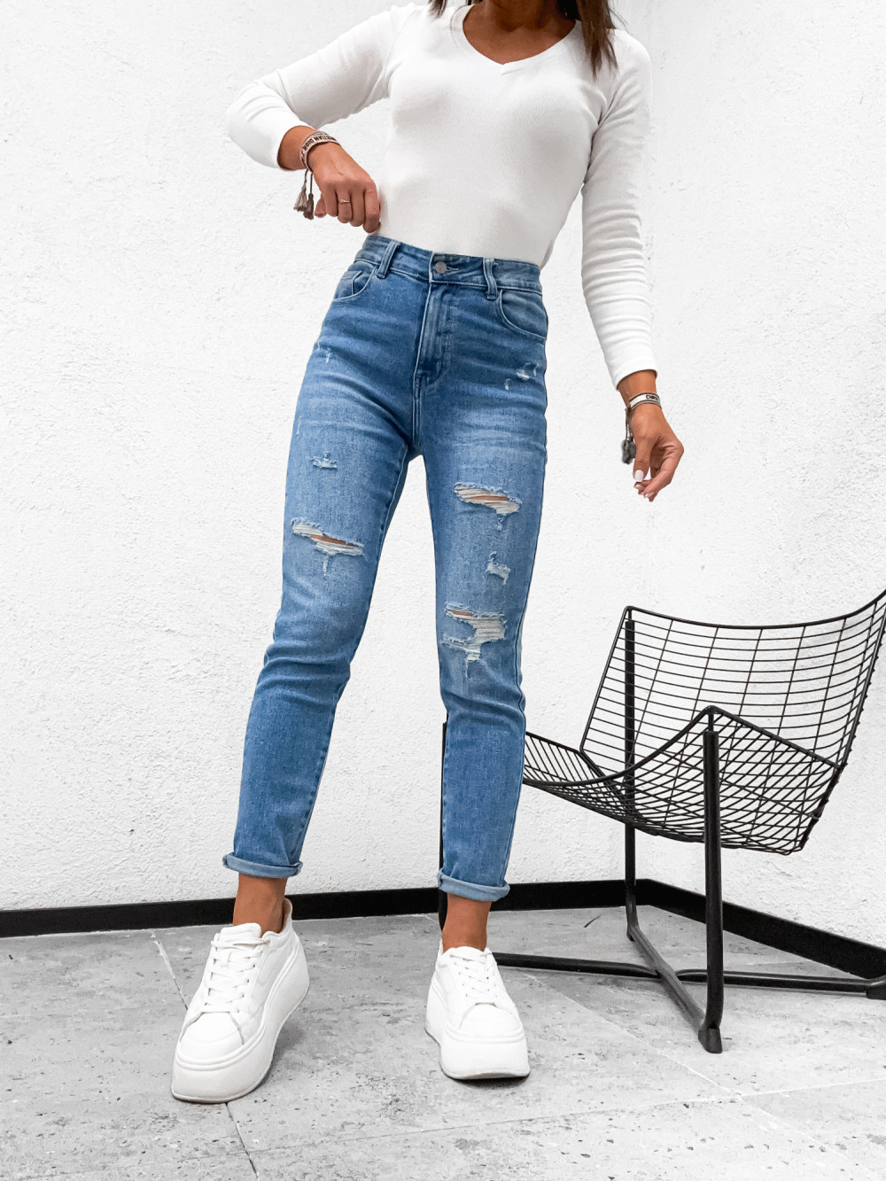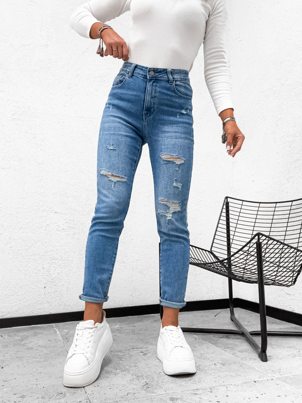 Spodnie jeansowe DENIM LOOSE z przetarciami stretch