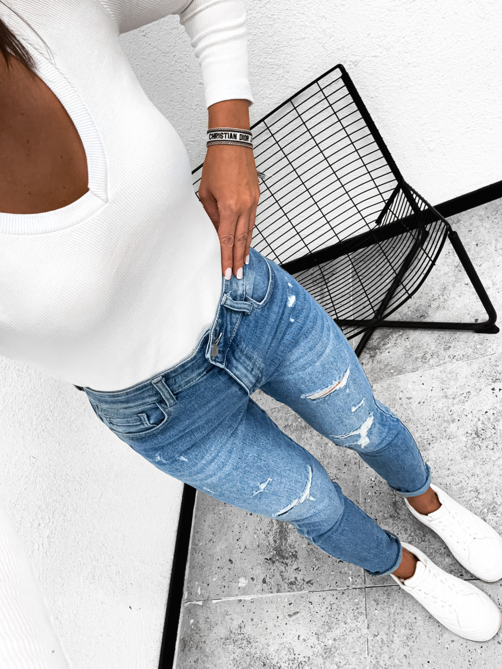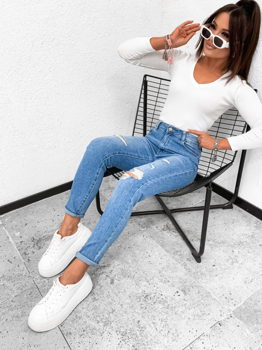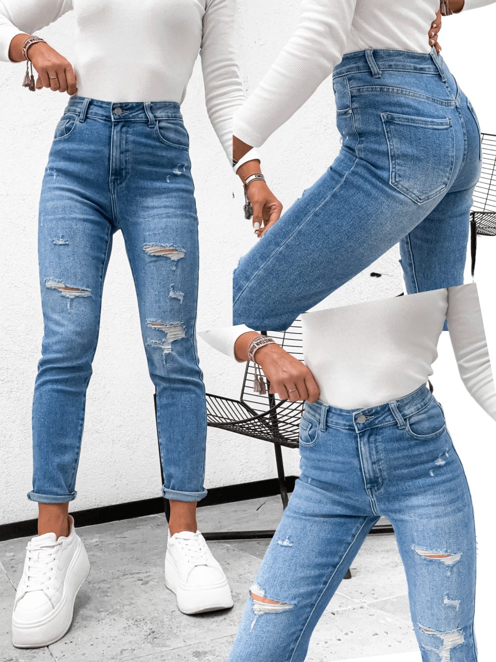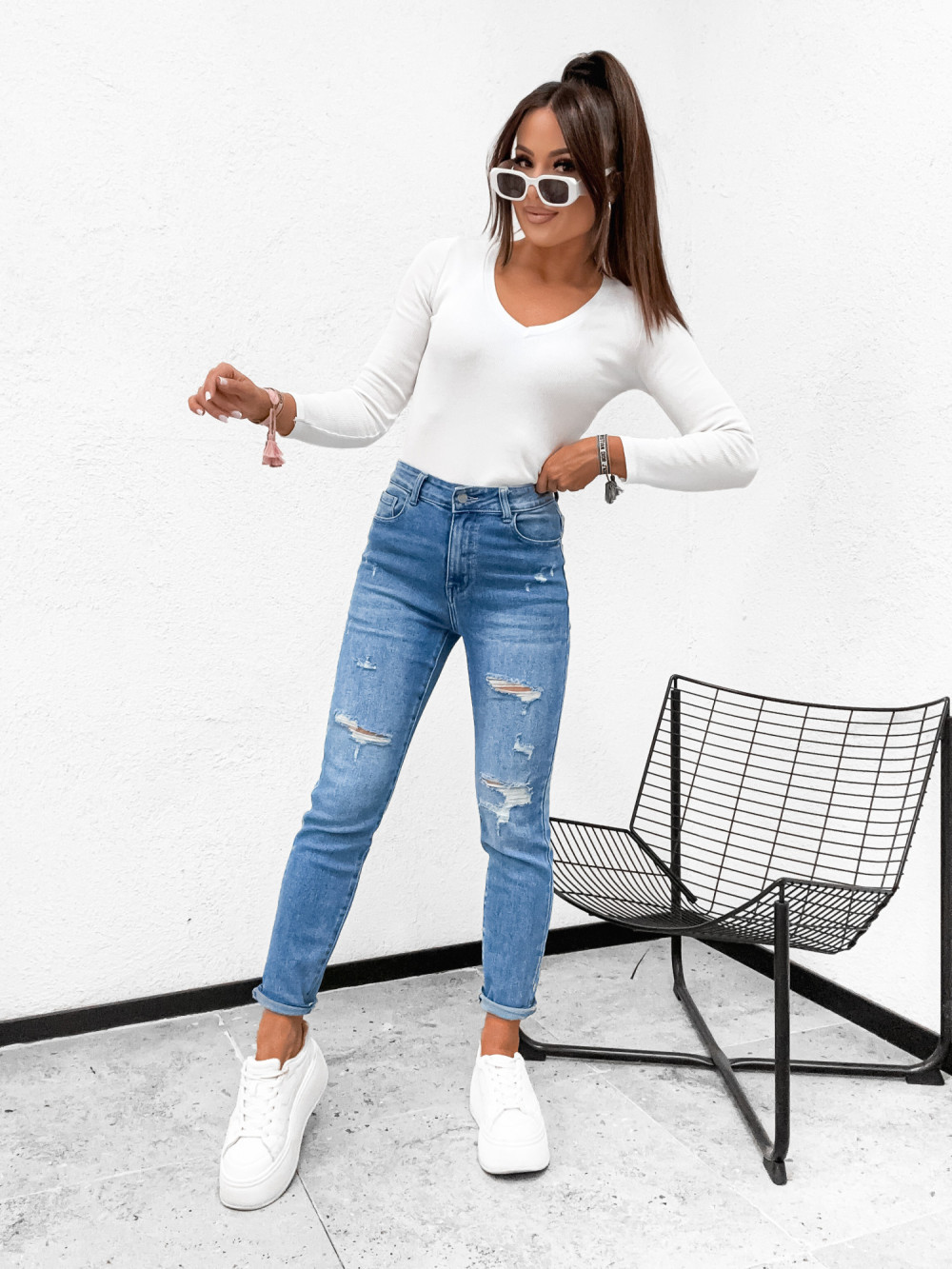 Spodnie jeansowe DENIM LOOSE z przetarciami stretch