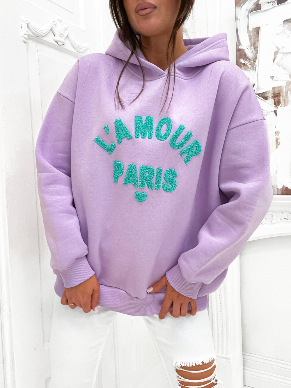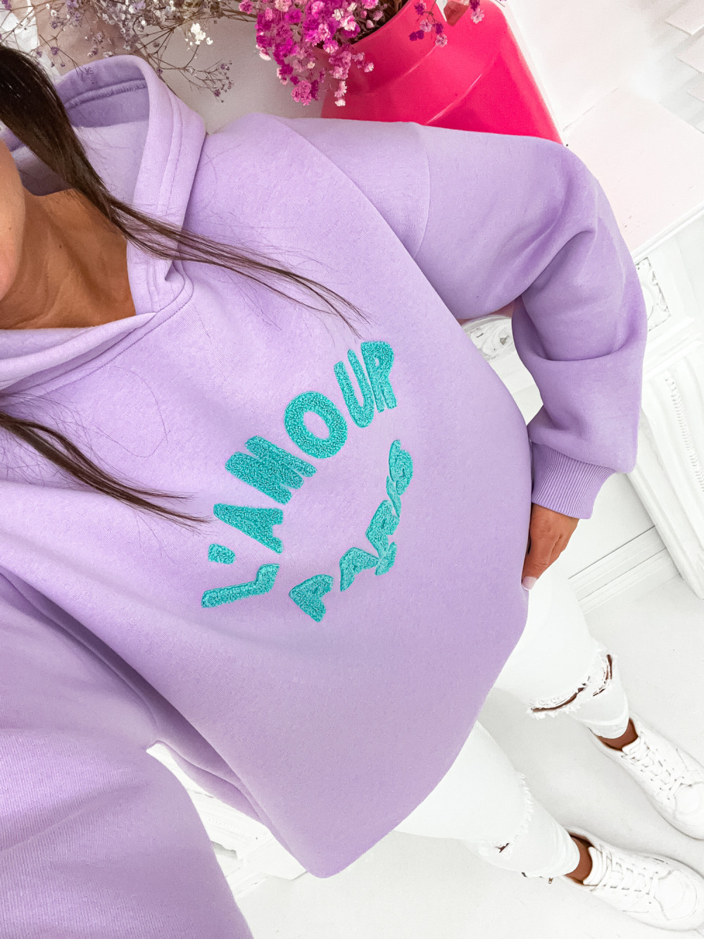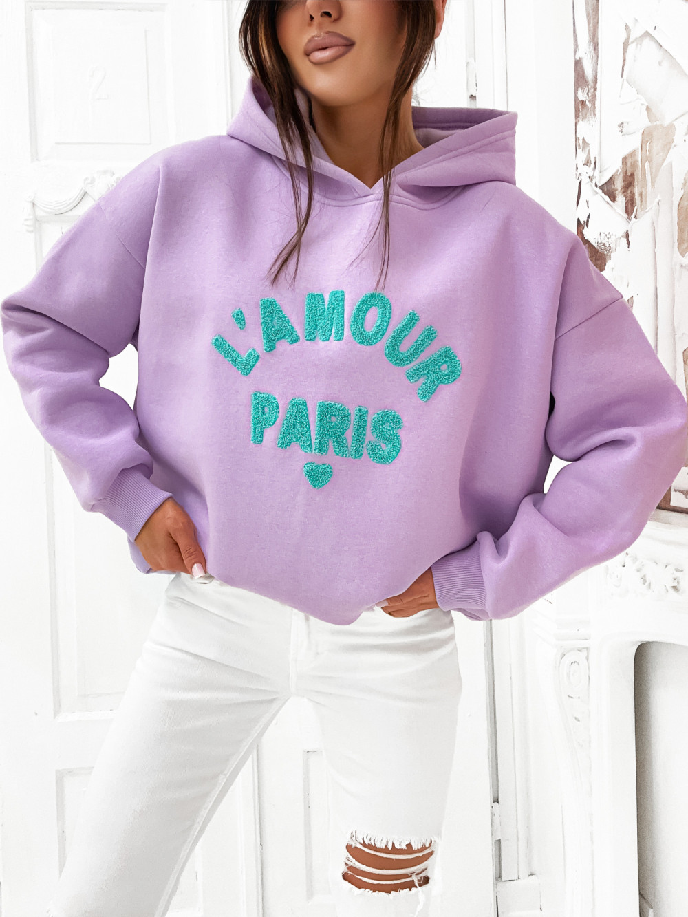 Bluza bawełniana z kapturem LAMOUR PARIS lilac