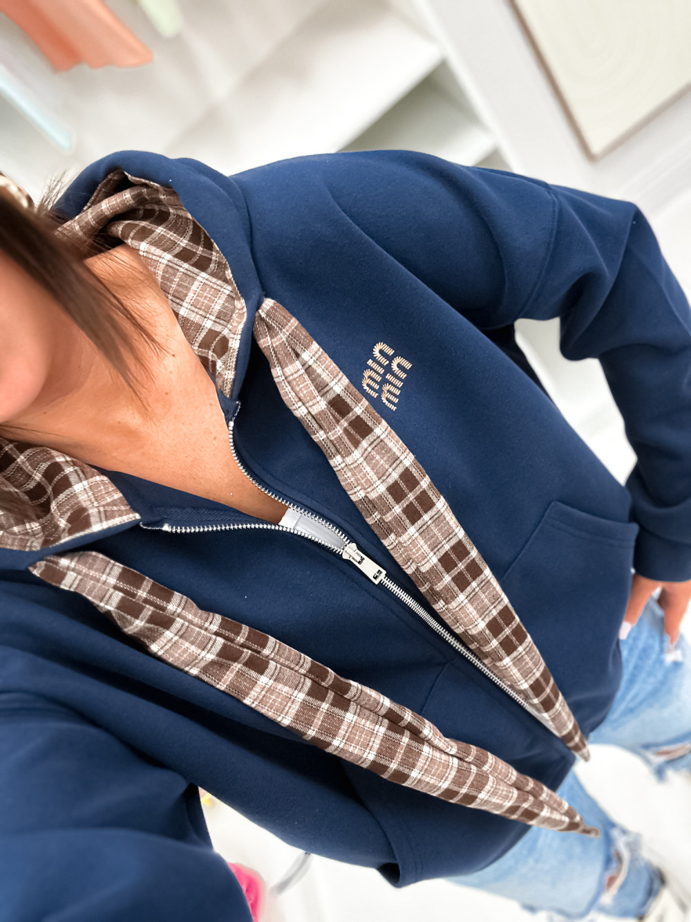 Bluza bawełniana na suwak z kapturem MINIMALISMO II navy